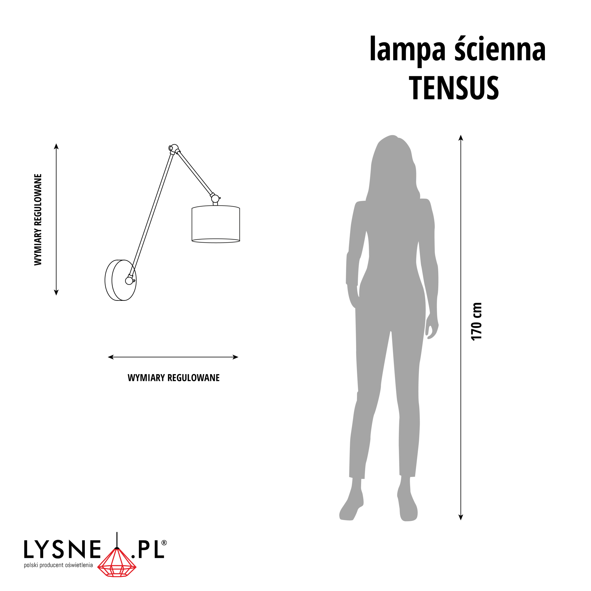 | Wymiary lampy (stelaż + abażur) | wysokość – max. 70 cm (wymiar regulowany), szerokość – max. 70 cm (wymiar regulowany) |