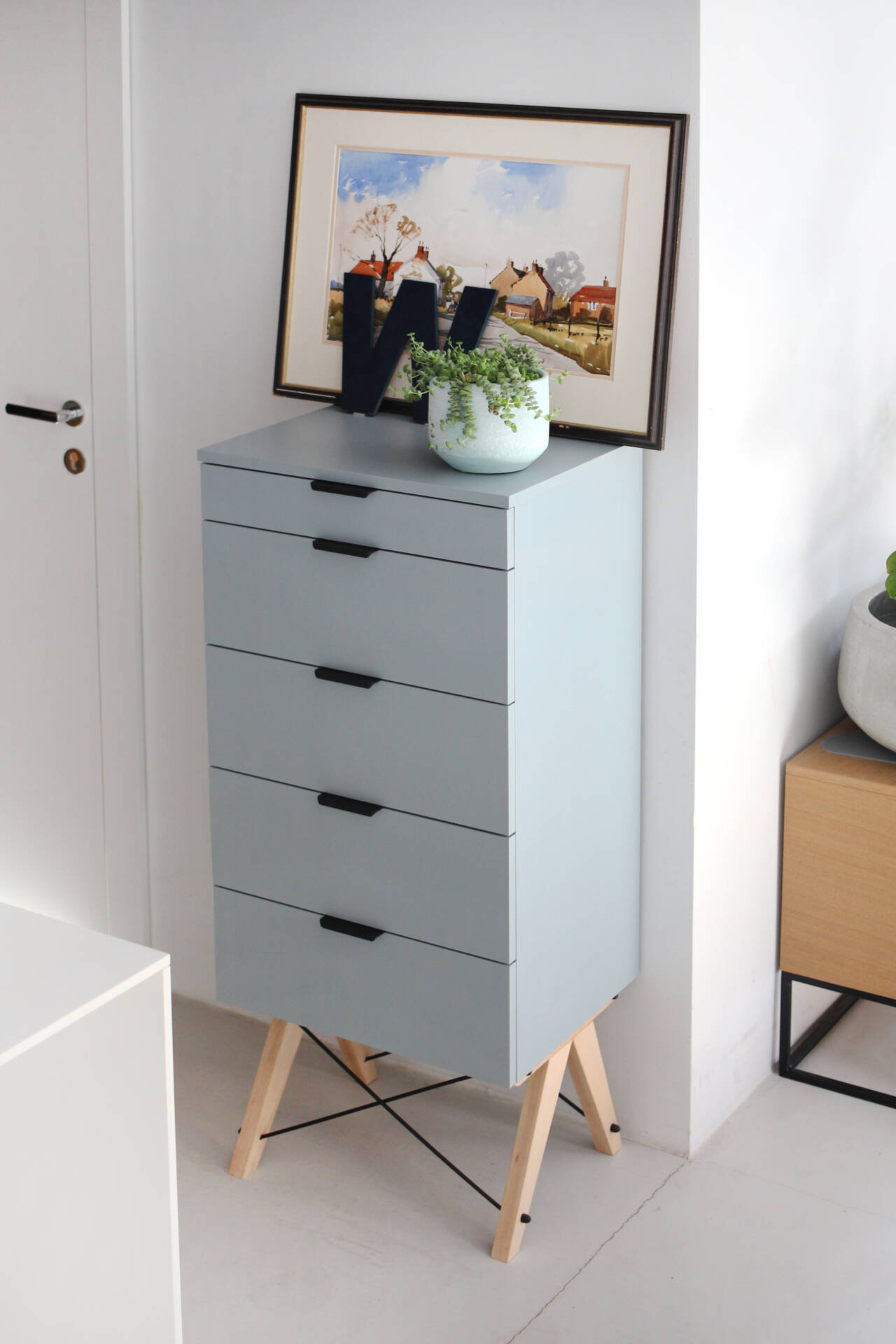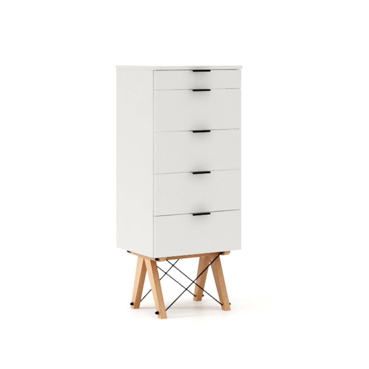 Skandynawska komoda Tallboy Tall z manufaktury MINKO to doskonały mebel do biura, salonu lub sypialni. Mebel posiada pięć pojemnych i głębokich szuflad, dzięki którym uporządkujesz swoje rzeczy. Naturalne, drewniane nóżki nadają komodzie oryginalnego charakteru. Prostota i minimalizm komody sprawiają, że idealnie wpasuje się ona w każdą przestrzeń, zarówno tę bardziej elegancką, jak i tę kolorową i eklektyczną.