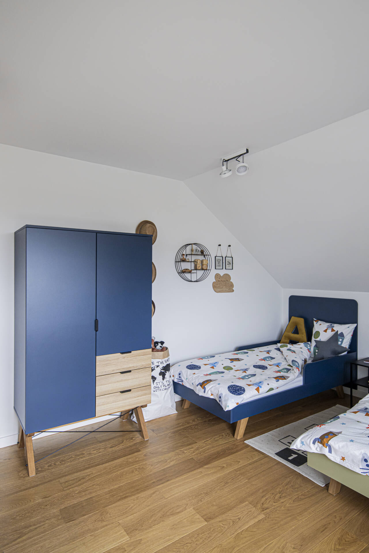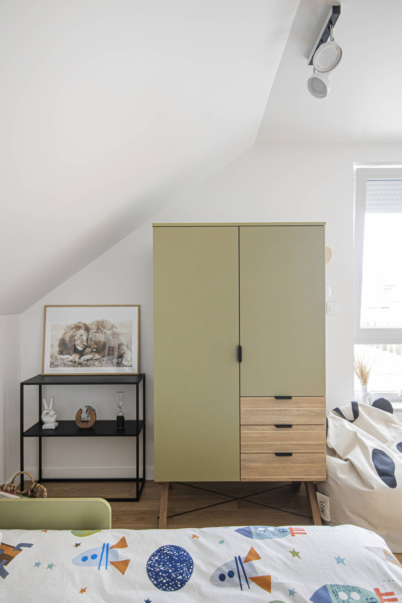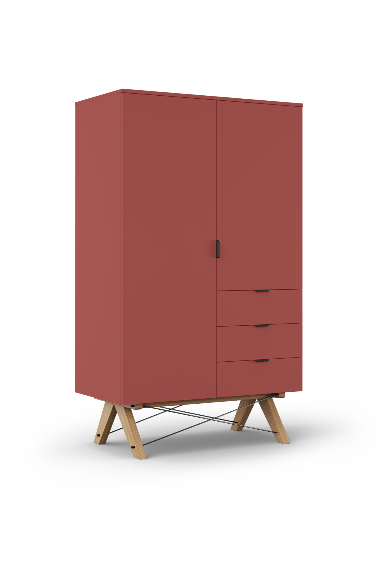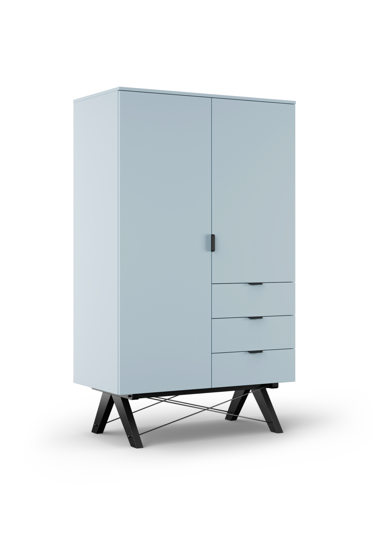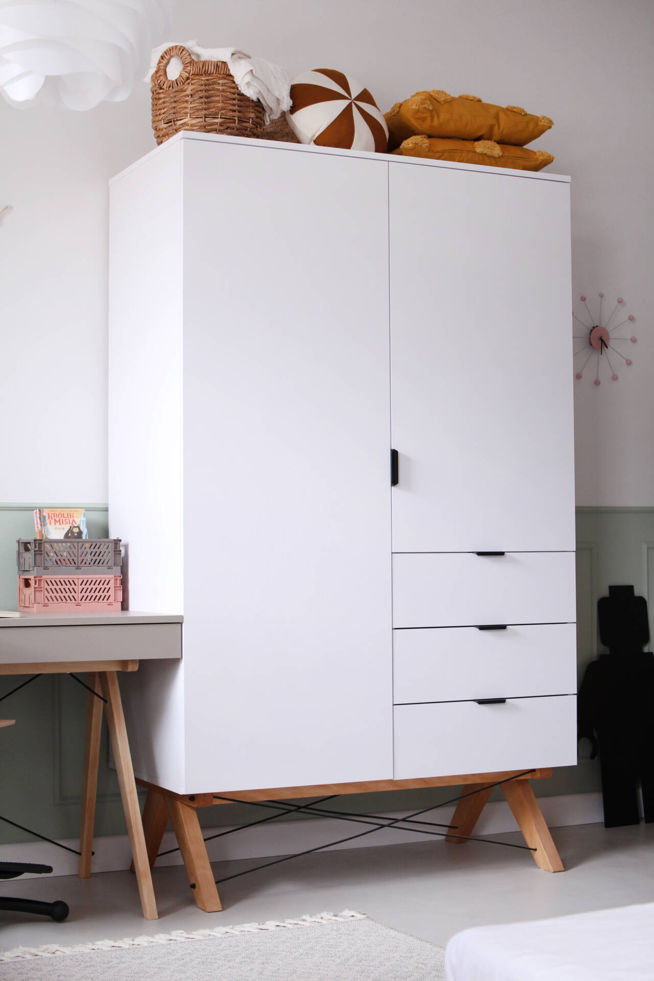 Szafa idealna do sypialni czy pokoju dziecka, z rodzinnej manufaktury mebli MINKO posiada drewniany stelaż meblowy wzmacniany stalą. Dzięki temu ręcznie robiona młodzieżowa szafa prezentuje się delikatnie, ale pozostaje przy tym mocna i stabilna.